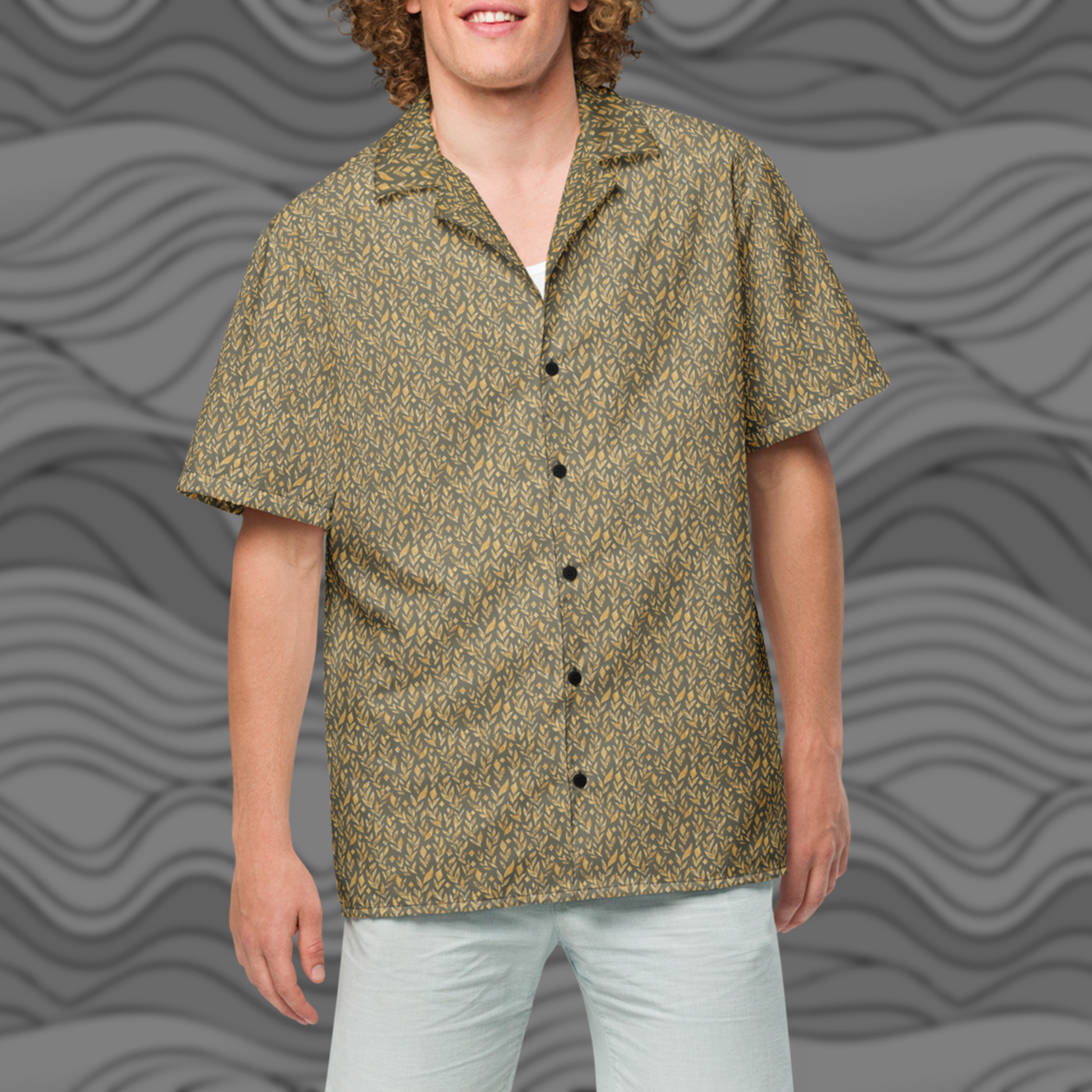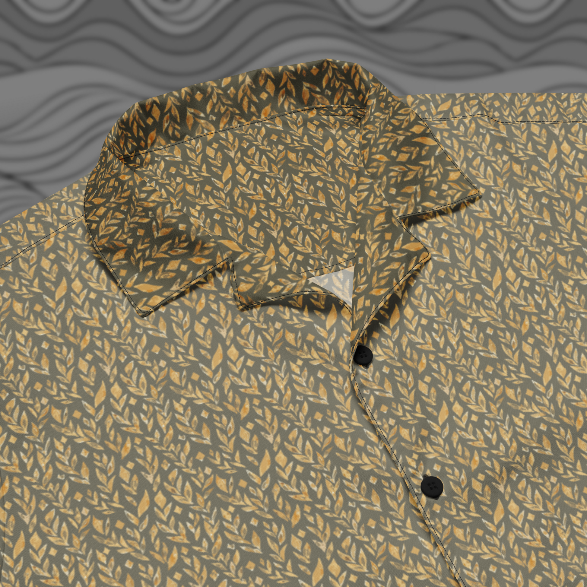Meet your new favorite summer shirt. Blending effortless style and cooling comfort, the Desert Bloom button shirt features a graceful golden leaf design that evokes sun-drenched landscapes and natural elegance. Crafted from featherlight, moisture-wicking fabric, it offers breathable softness even on the hottest days. Whether you’re strolling in the city or escaping to the desert, its relaxed oversized fit and UPF50+ sun protection make it the perfect choice for warm-weather ease and elevated everyday wear.