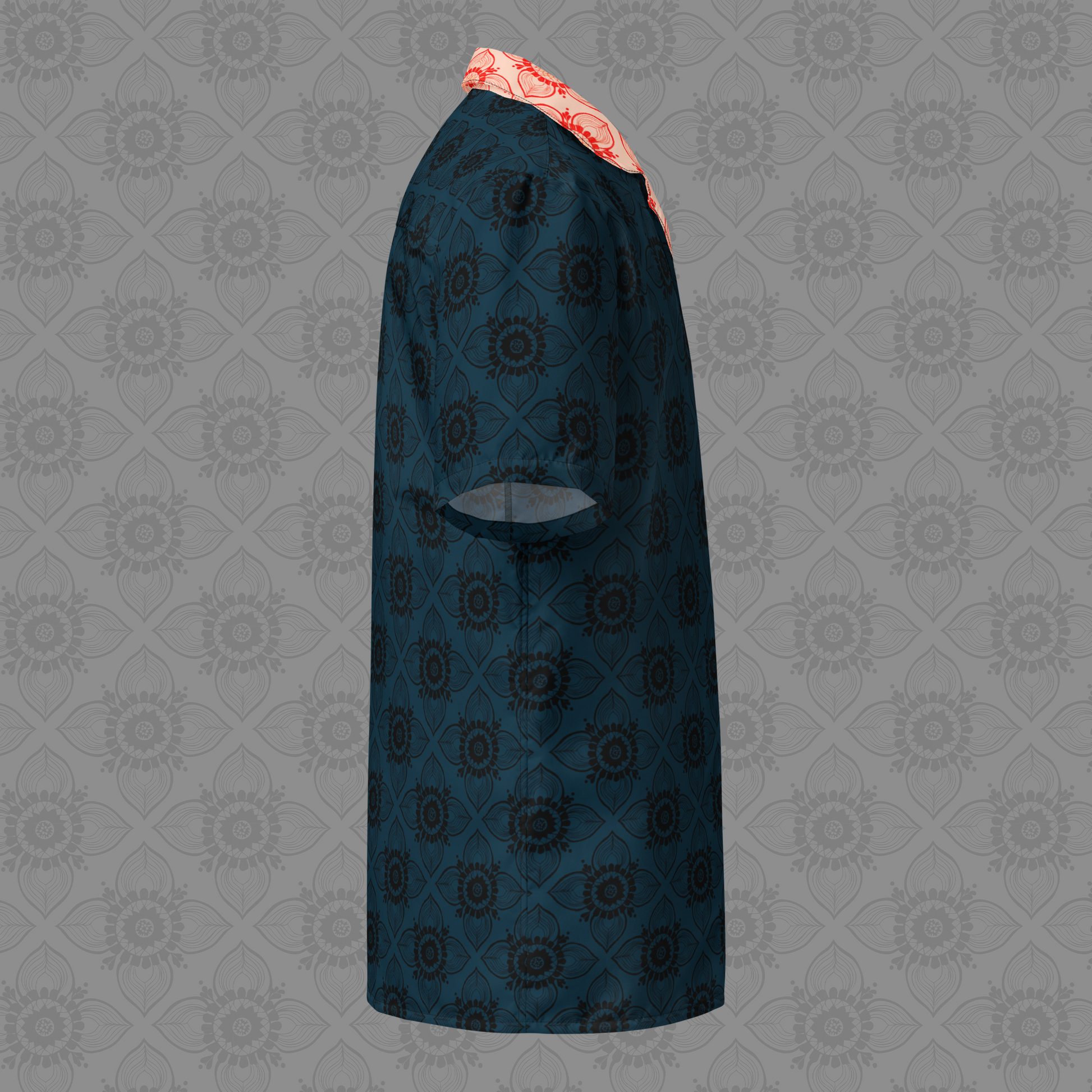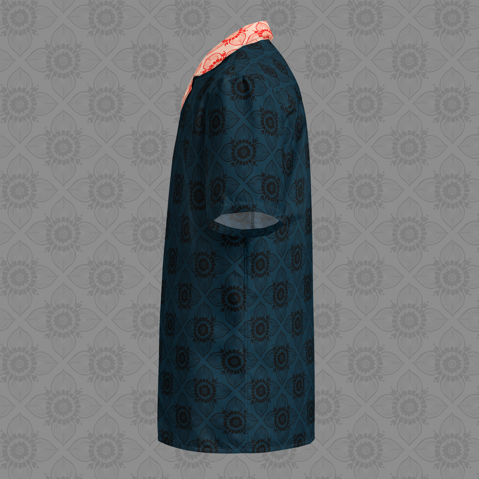 With its symmetrical elegance and bold contrast, Orchid Grid is a pattern that balances artistry and wearability. It’s designed for those who appreciate detail, structure, and a touch of the unexpected. Whether you size down for a tailored look or embrace the oversized vibe, this shirt brings a refined energy to everyday style.