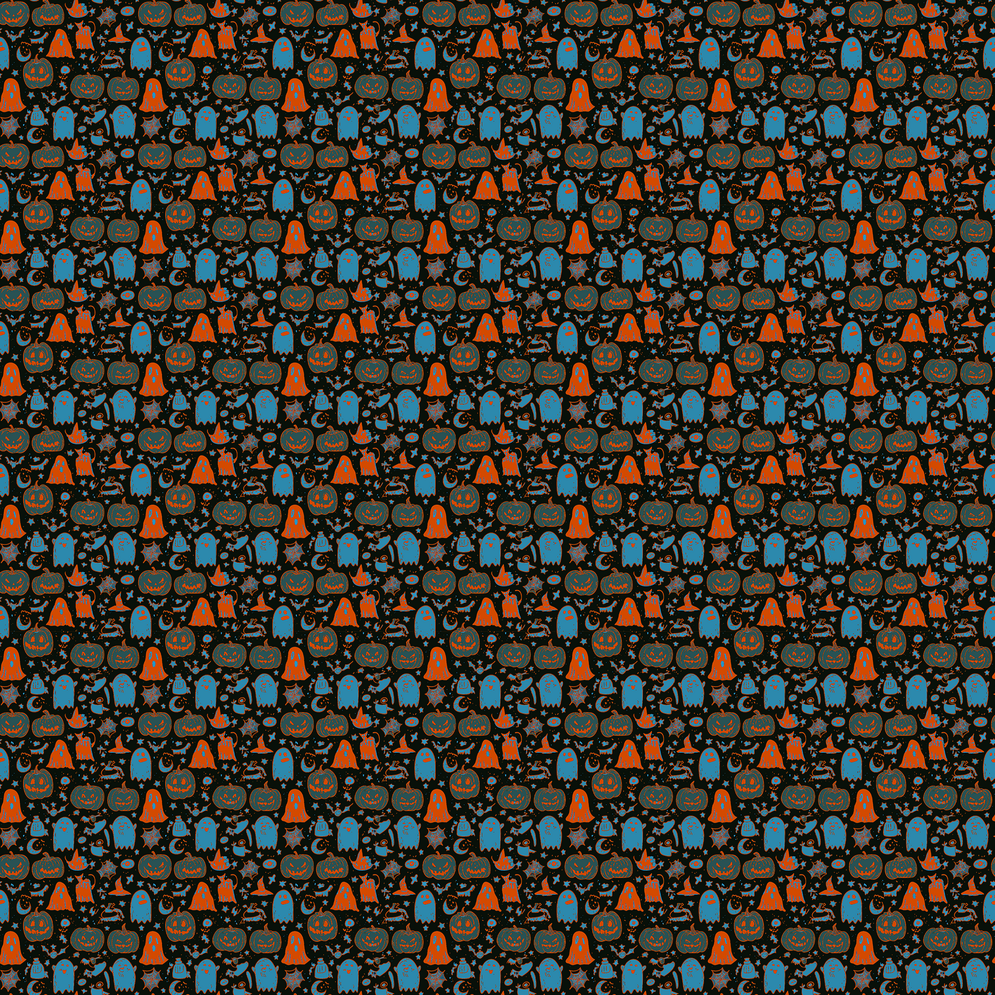 The balanced mix of bold oranges, cool blues, and dark accents gives this pattern a vibrant look that stands out whether you’re at a Halloween party, fall gathering, or just enjoying a laid-back day. Its whimsical details keep things lighthearted while still celebrating the spookier side of autumn.