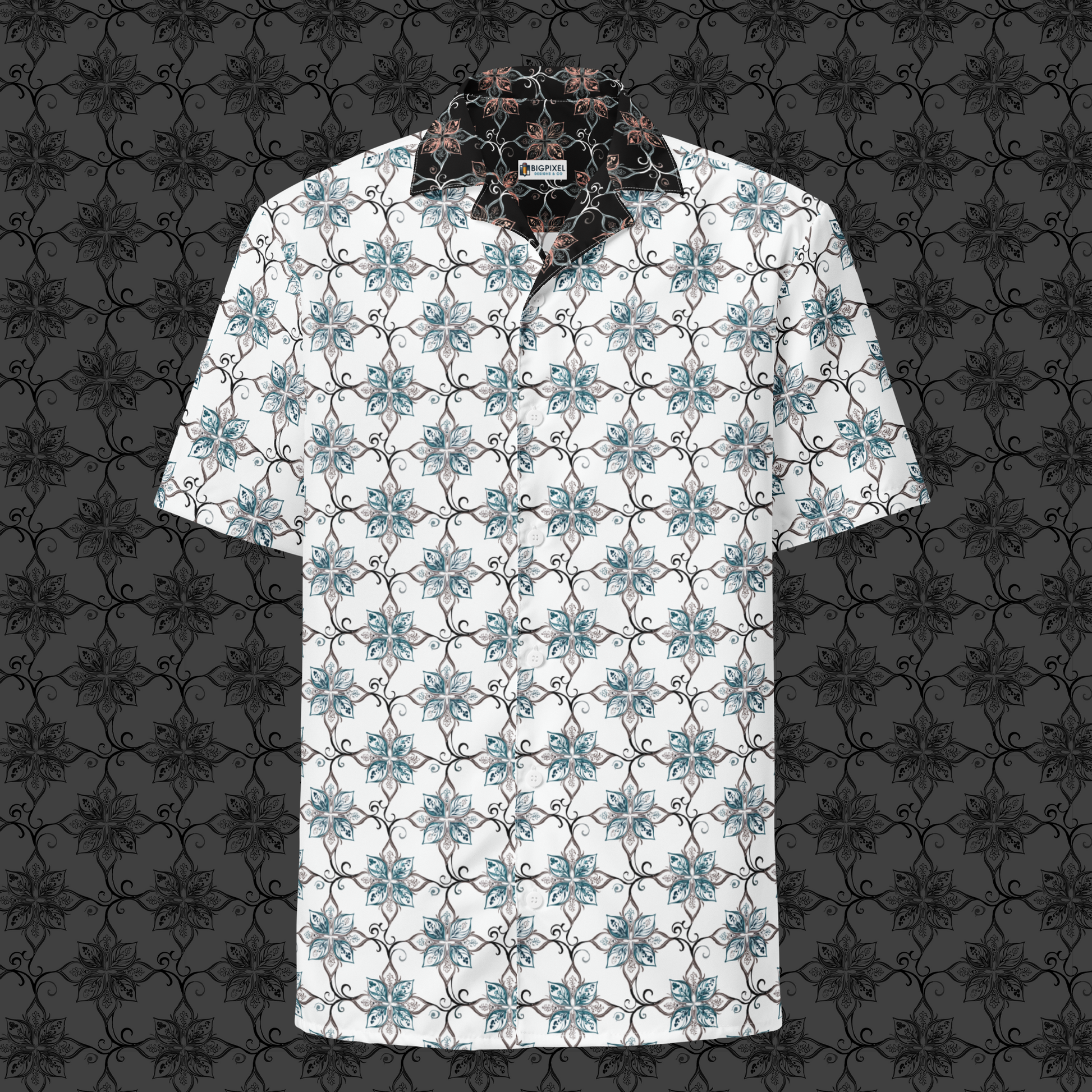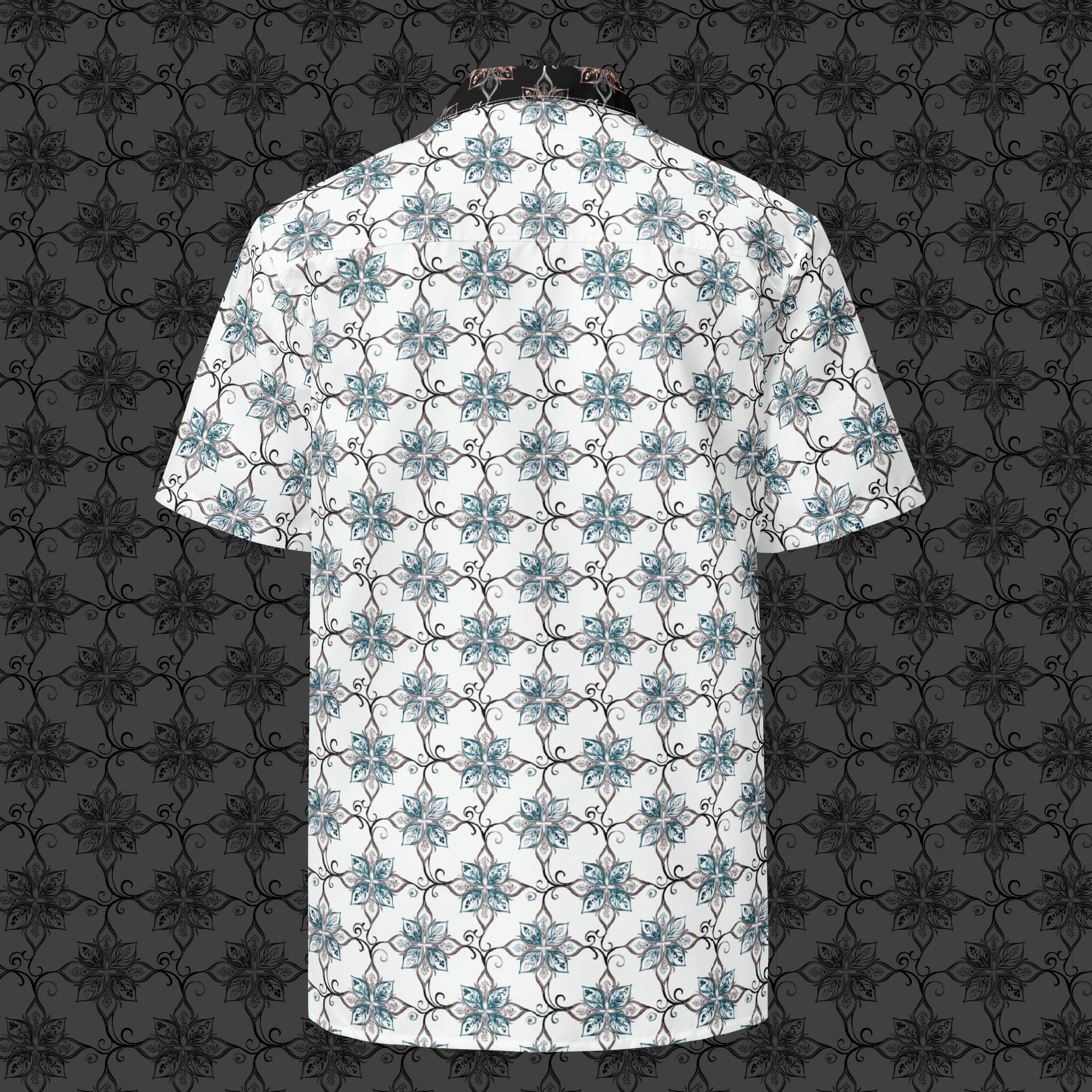 Designed to turn heads without shouting, Teal Tapestry is a pattern that speaks through symmetry and softness. Its breathable flow and laid-back silhouette make it a go-to for warm days and creative expression. For a more tailored feel, simply size down - either way, this shirt is made to move with you and reflect your unique style.